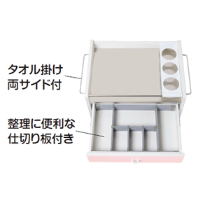 付 属 品/タオル掛け(2本)、落下防止パイプ、ボトル立て、仕切り板、棚板 1枚