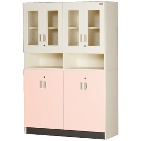 上 部/ ガラス両開2枚扉強化ガラス、t=4mm(2室、鍵付)、棚板2枚